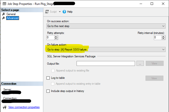 Additionally, the used-to-be last step before Report SSIS failure was introduced that will now precede that step will need to quit the job reporting success (Fig 4) instead of continuing to the next step.