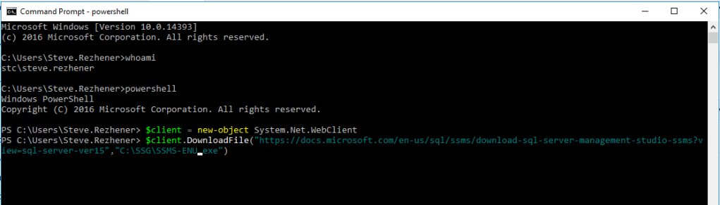 $client.DownloadFile(“https://aka.ms/ssmsfullsetup”,“C:\Users\Steve.Rezhener\Downloads\ssms-setup-enu.exe”)