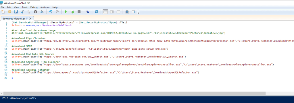 #$client.DownloadFile(“https://datasteve.com/wp-content/uploads/2019/12/datasteve-sm.jpg?w=107”,“C:\Users\Steve.Rezhener\Pictures\datasteve.jpg”)